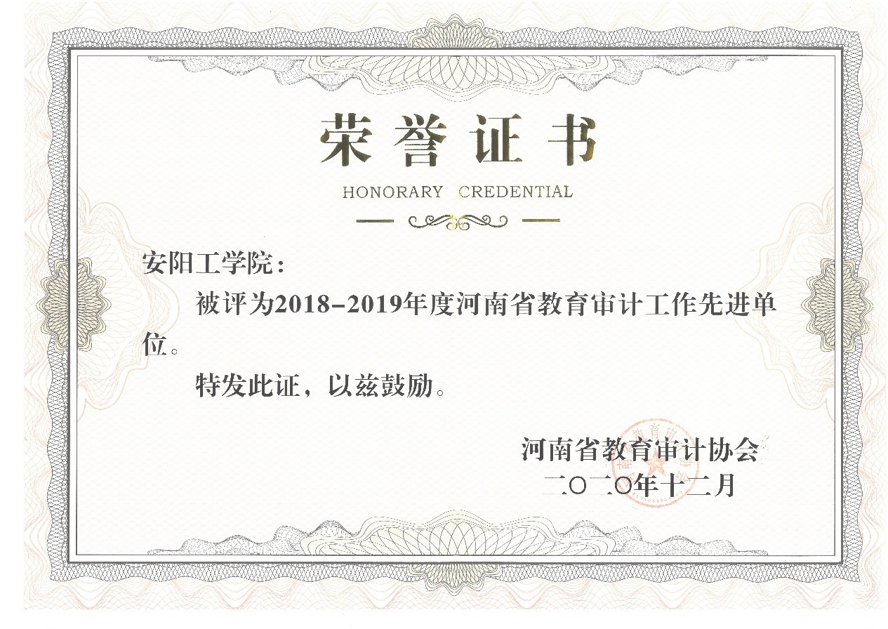 我校荣获2018-2019年度“河南省教育审计工作先进单位”