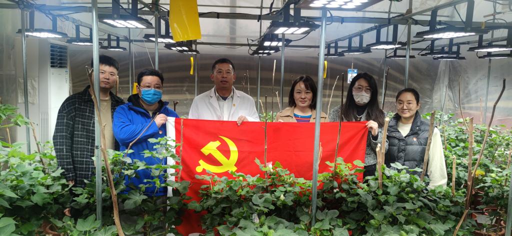 支部党员在棉花育苗室
