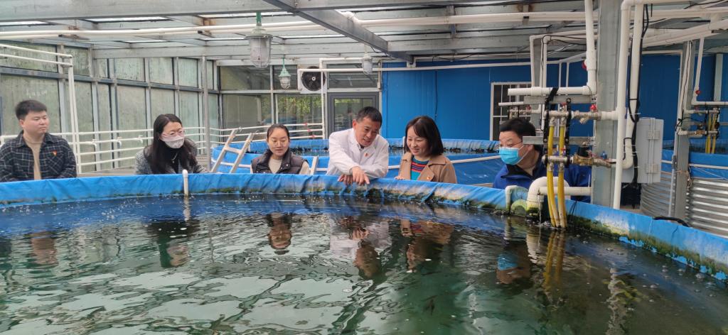 彭仁海为支部党员讲解淇河鲫鱼繁育要点